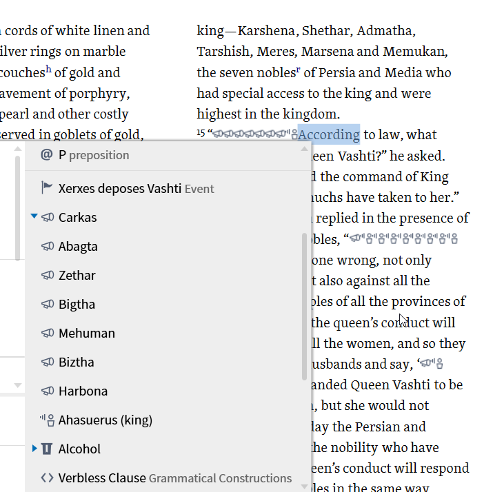 As the screenshot below shows the speaker and addressee labels are reversed in Esther 1:15