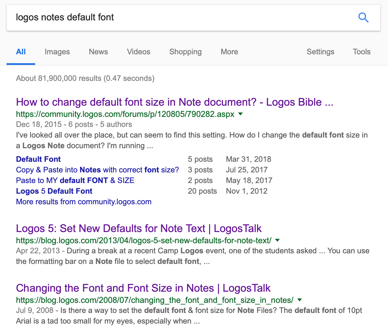 These broken links are unfortunate since the Logos Blog posts are coming up in the top three results about (changing) the default font: