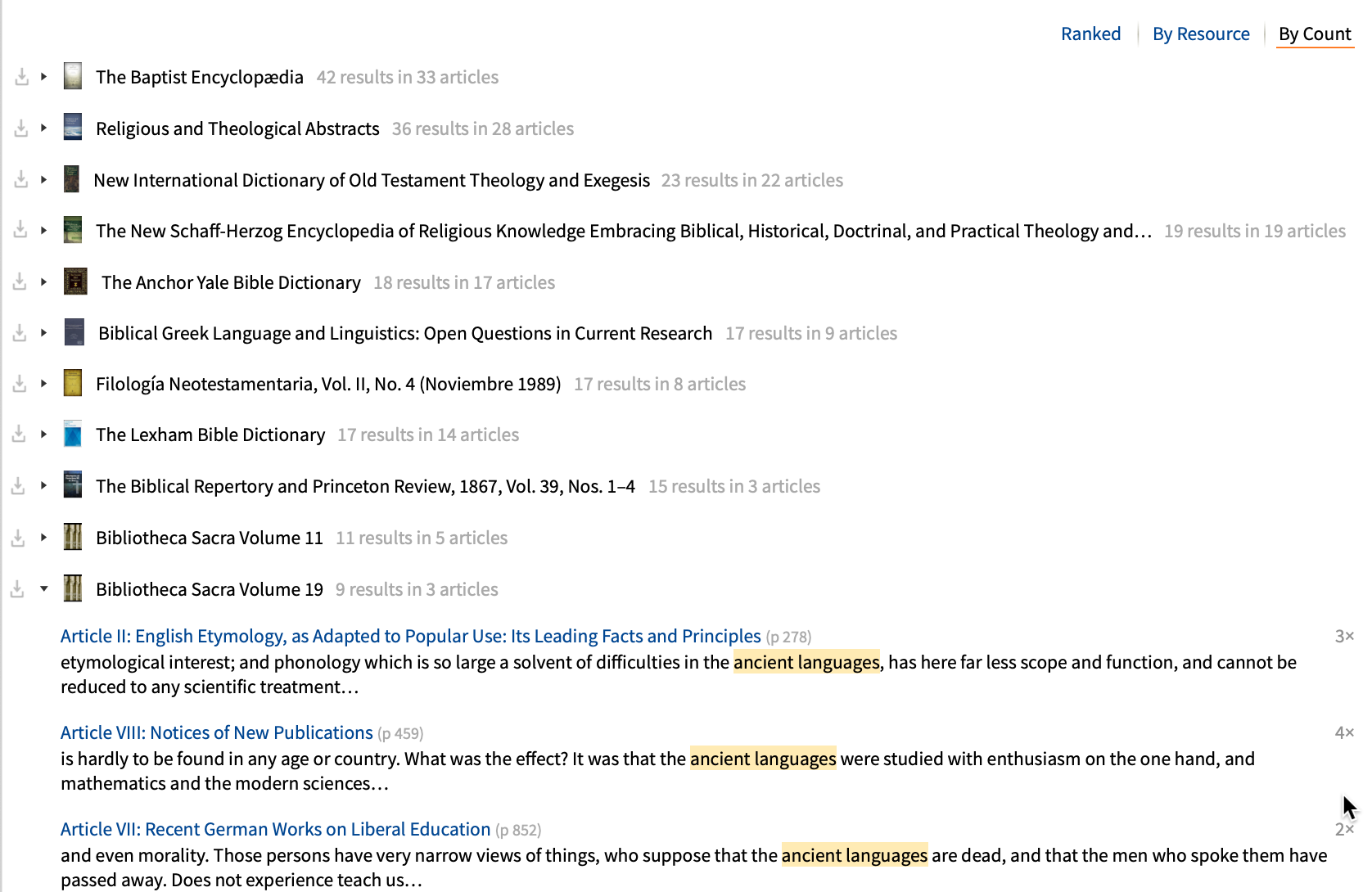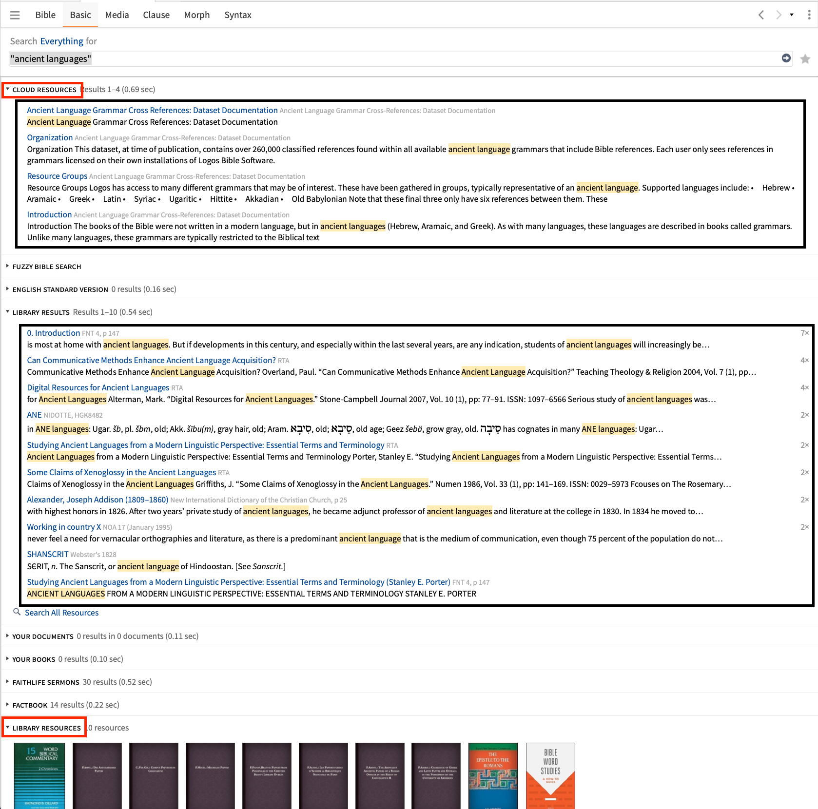The Cloud Resources search results apparently display in "Ranked" mode. This is more like the Library Results section of the Everything search than the Library Resources section.