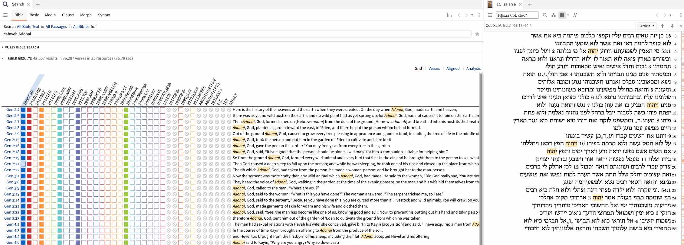 Follow-up to thread => L8.4 Performance: It takes 146.9 sec to do a Grid Bible search for "Yahweh" in all my bibles found a Bible Search using Logos 8.5 Beta 4 on macOS 10.14.4 has search term highlighted in Dead Sea Scroll (DSS) resource while DSS resource does not appear in Bible Search grid: