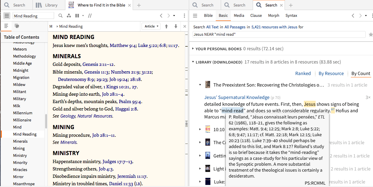 Jesus NEAR (knew, knowing, perceived, aware) as you can see I limited my search to the Gospels and searched my Top Bibles. There are some false positives, but they are readily recognized as such.