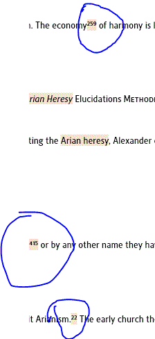 If I search arian heresy I get heresy in blue lighter and the arian in this peach color shown. i will also show some numbers in blue and in peach color just like above. Can someone tell me what is happening? Is this a bug?