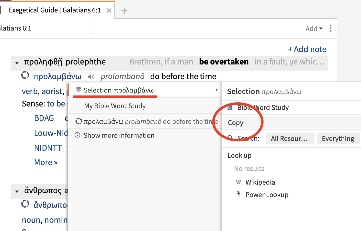 Folks, how do I copy the greek words from the exegetical guide so I can paste them into a word document?