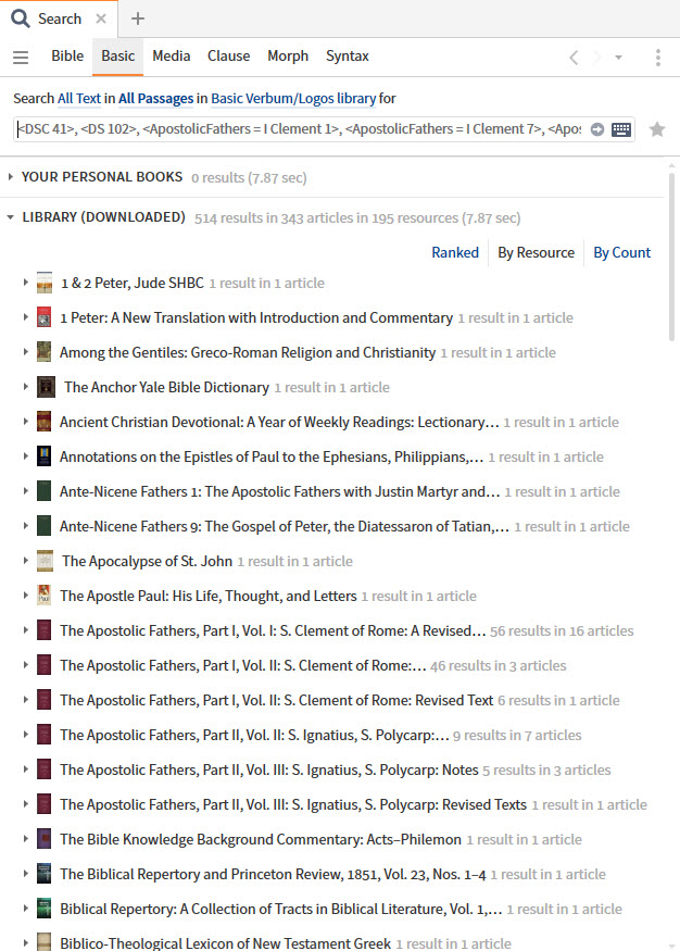 - which contains some or all of <ApostolicFathers = I Clement 1>
