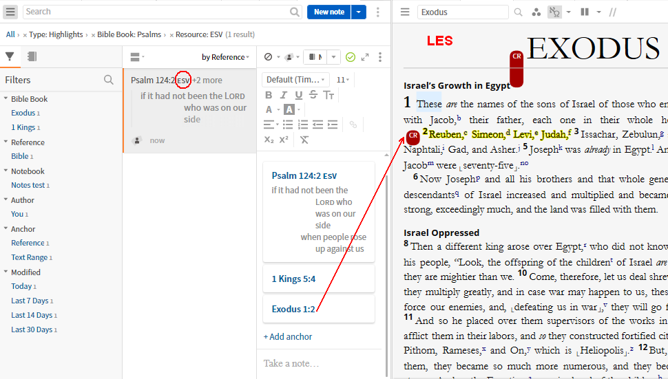 If I add Anchors in the Notes tool, the CR indicator appears at the beginning of certain bible books in LES: