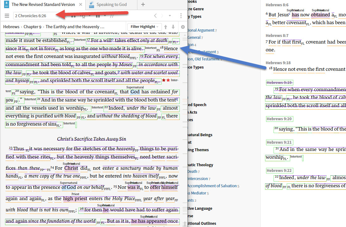 3. Click on Hebrews 9:18 ... Note that the NRSV immediately repositions to that passage.
