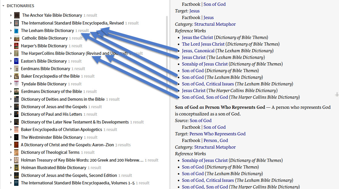 3. So I think perhaps something was added to the Factbook that I didn't notice. So I look at the Source and Topic Factbook entries. I find (a) no Figurative Language data added under "See Also", (b) no new section for Figurative language {I see in the documentation that this exists, but I can't find it}, and (c) the Dictionary section in no way marks figurative language resources and in fact does not even include at least one primary dictionary resource.