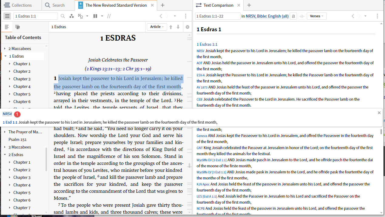 The results in this very uninformative F7 - in comparison the Text Comparison tool is in the background. A single entry comparison is a bit of an oxymoron. It is not possible to create a priority list that meets my needs generally AND my needs in the Text Comparison tool. Therefore, what makes sense is to show the top 5 actual occurrences of the reference in my priority list.