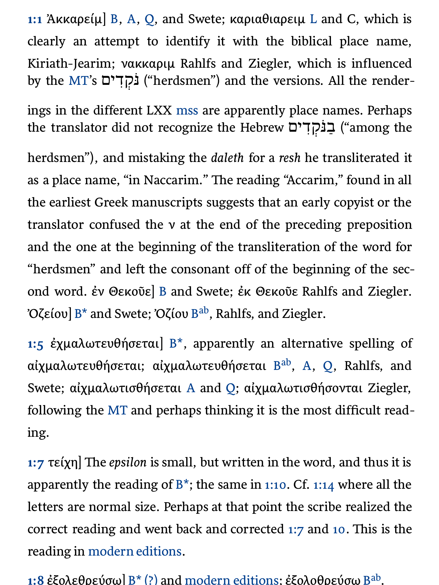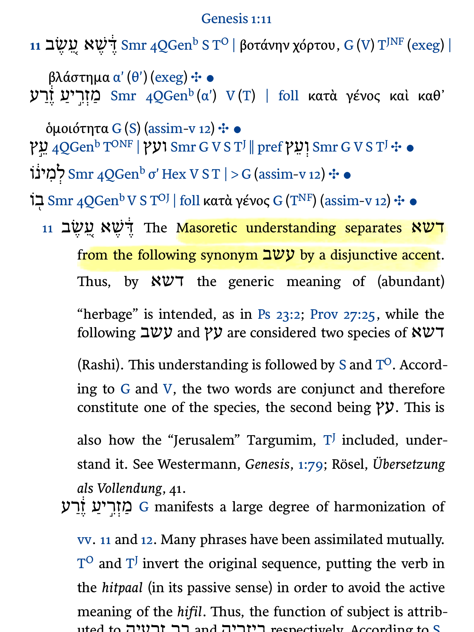 Quinta (hebrew) and Septuagint Commentary (greek) have a lot more discussion in their respective apparatus. Even better, if all you need are these, you can buy the SC ones stand-alone or Quinta by book: cheap! Here's samples: