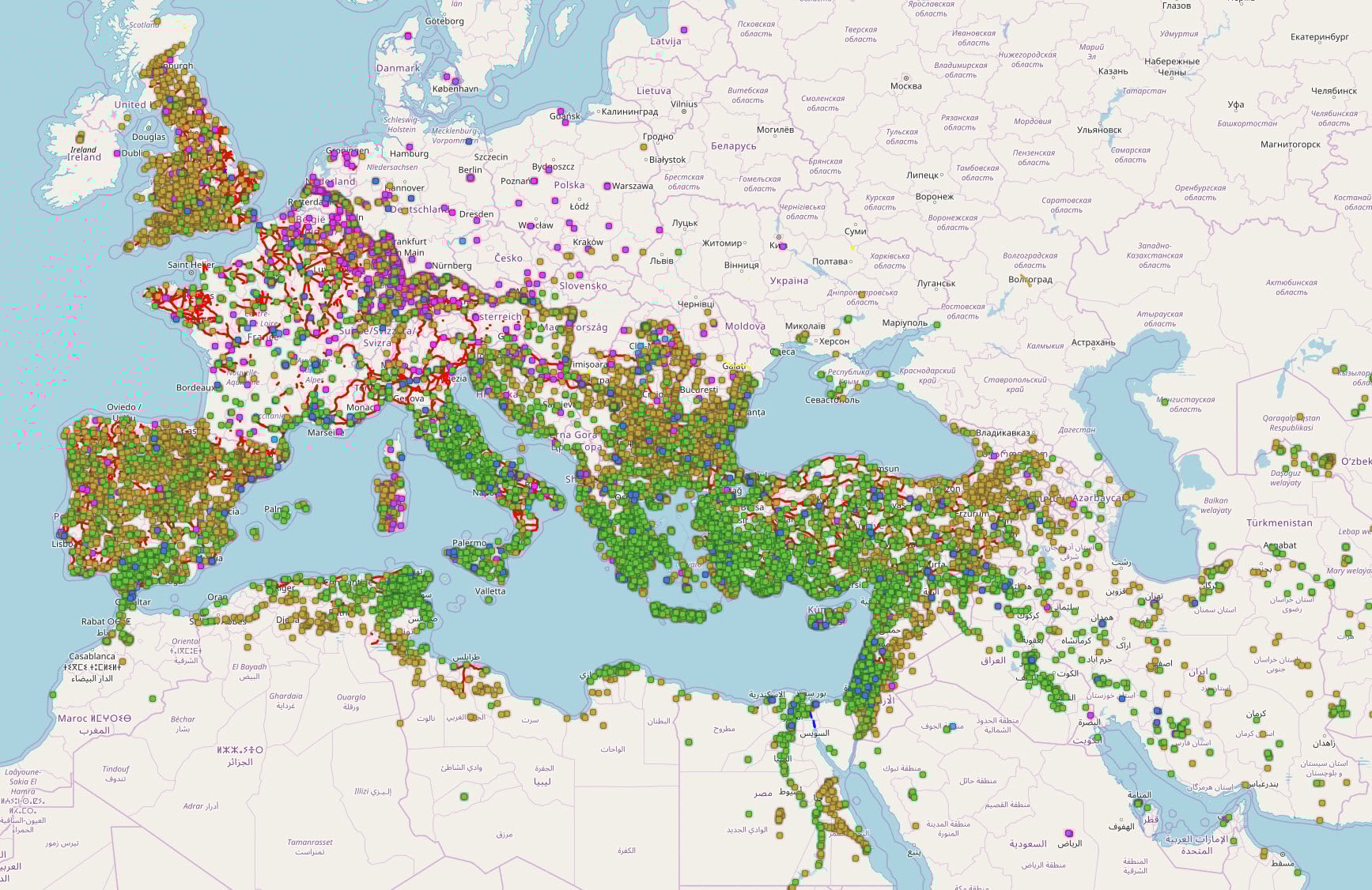 Some examples (screenshots). You can scroll in on the actual atlas and drill down on any of these, and click on the different sites to get more info.