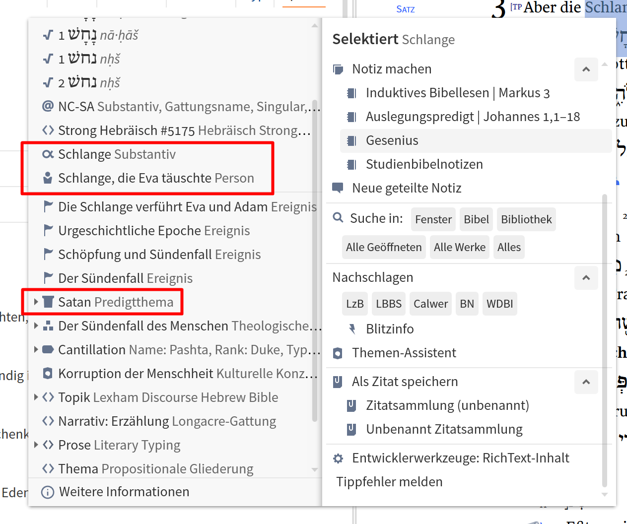 Wenn du herausfinden willst, warum das so ist, würde ich direkt auf das Wort im Bibeltext schauen. Nimm einen Urtext oder eine Bibel mit Interlineardatensatz und schau dir dazu die getaggten Referenzen entweder im Info-Fenster oder im Rechtsklickmenü an. In diesem Fall finde ich das gelungen gelöst - das Bibelfakten-Tagging beschränkt sich auf Fakten, die Interpretation wird dem Predigtthemen-Datensatz überlassen.