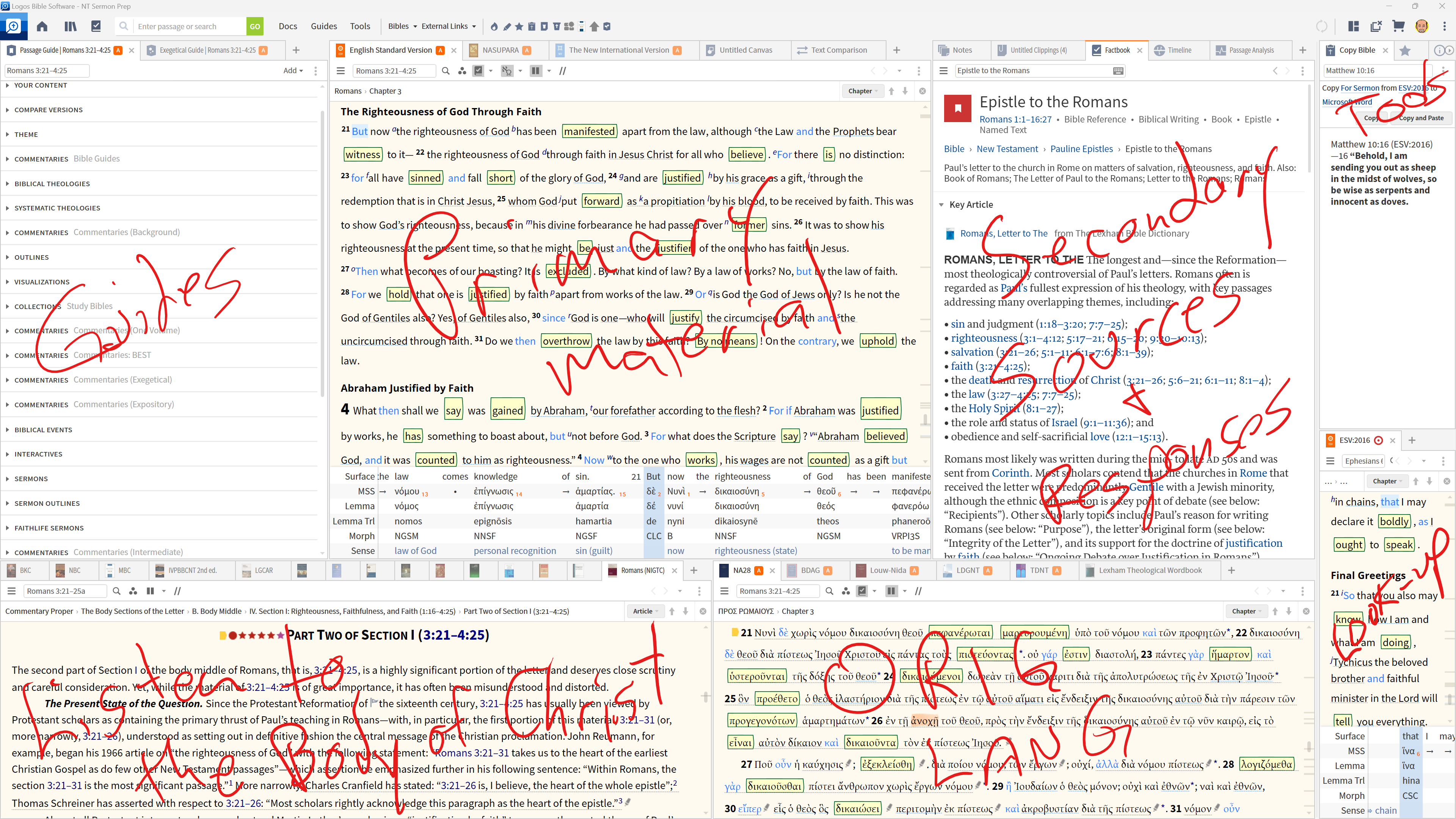 I have a pretty good collection of books and some Lexham products. Can someone give me advice on how to set up my logos page for a bible study on Romans 3:21-4:25?