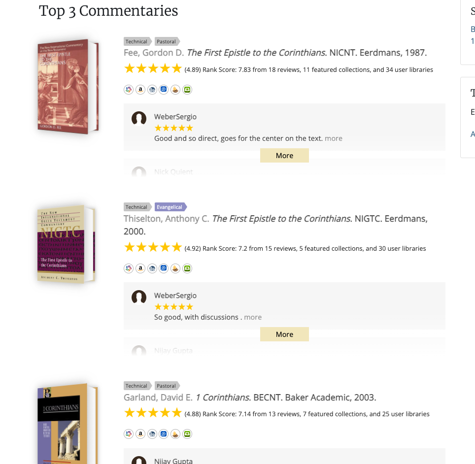 In the Bible Resource Guides on the website there is a section "Best Books." It appears to list 5 books for each book of the Bible. I am wondering where it pulls this information from. I am guessing that it may be from bestcommentaries.com but I am not sure. Does anyone have any info regarding this? Thanks!