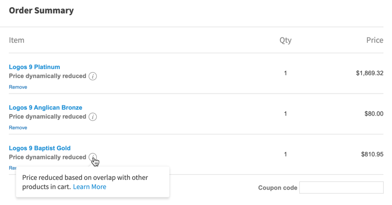 Did you know that if you buy overlapping products at logos.com, you'll get dynamic pricing? It looks like this: Just in case it ever comes in handy...