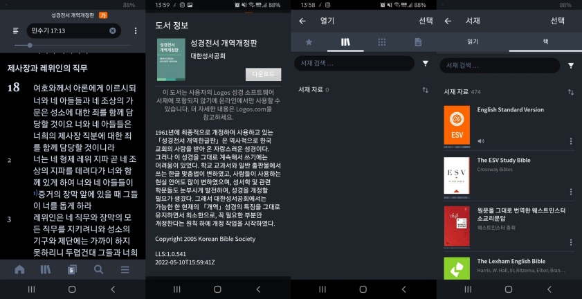 안녕하세요, 안드로이드 스마트폰에서 성경을 포함한 어떤 책도 다운로드할 수가 없는 문제가 있어 공유하고 해결 요청드리고자 합니다.