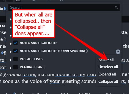 But when all are collapsed.... then when I click on the "down arrow" then I get the following menu which shows "Collapse All".... like maybe "Collapse All" is in the wrong place?????