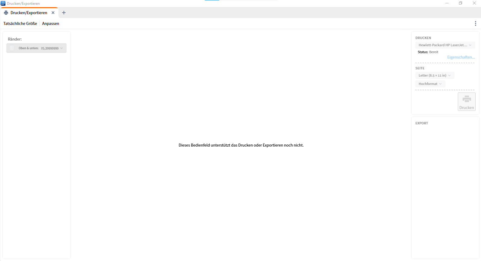 Hallo, wenn ich etwas exportieren möchte aus dem dem oben erwähnten Suchfeld, dann steht dort: "Dieses Bedienfeld unterstützt das Drucken oder Exportieren noch nicht." War das nicht bis vor kurzem noch möglich? Wird es wieder möglich sein?