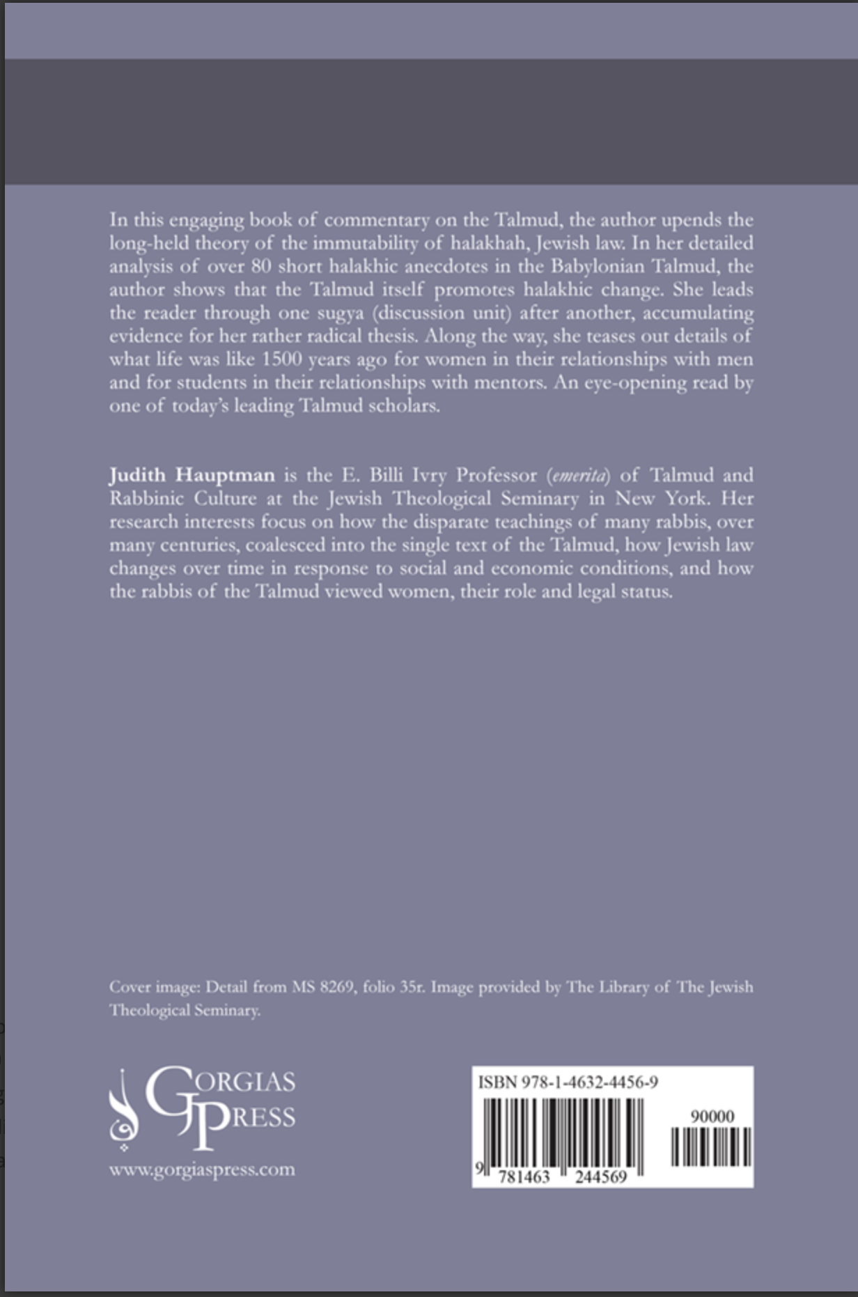 In this engaging book of commentary on the Talmud, the author upends the long-held theory of the immutability of halakhah, Jewish law. In her detailed analysis of over 80 short halakhic anecdotes in the Babylonian Talmud, the author shows that the Talmud itself promotes halakhic change. She leads the reader through one sugya (discussion unit) after another, accumulating evidence for her rather radical thesis. Along the way, she teases out details of what life was like 1500 years ago for women in their relationships with men and for students in their relationships with mentors. An eye-opening read by one of today’s leading Talmud scholars.