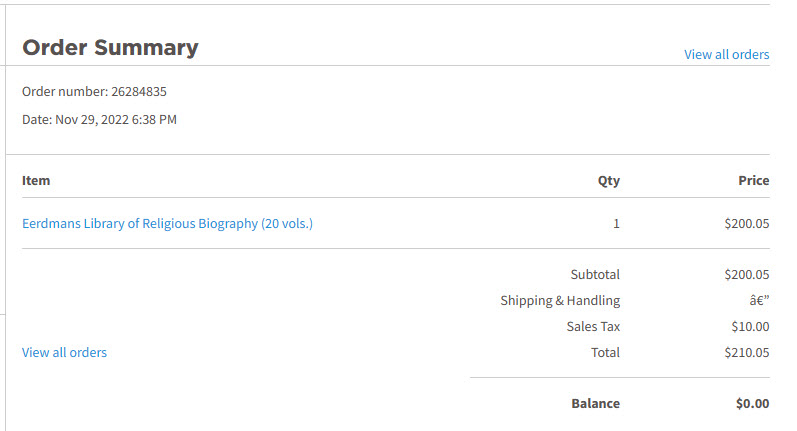 I just noticed it starting recently too. I looked back and saw that it had started on Nov 29. They have also, it turns out, been charging me a very interesting amount for shipping & handling: — And prior to sales tax being charged, that is the amount that shows up in that field for all prior transactions. That's a very interesting charge, Rosie. Nov 29, aye?