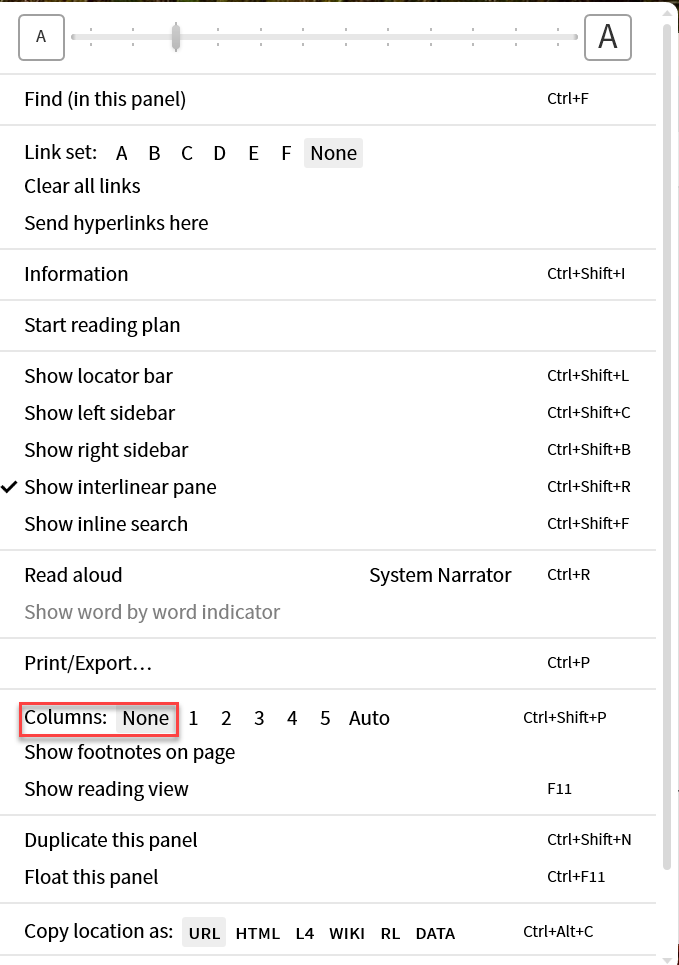 This might be a simple answer, but I can't seem to find a way to open my bible without it automatically being in two columns....makes scrolling difficult.