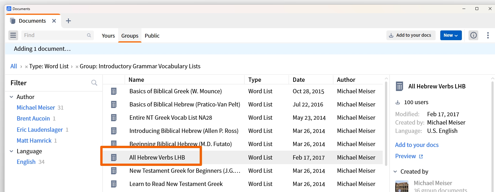 As per the screenshot I was trying to download an LHB related document from the group Introductory Grammar Vocabulary Lists
