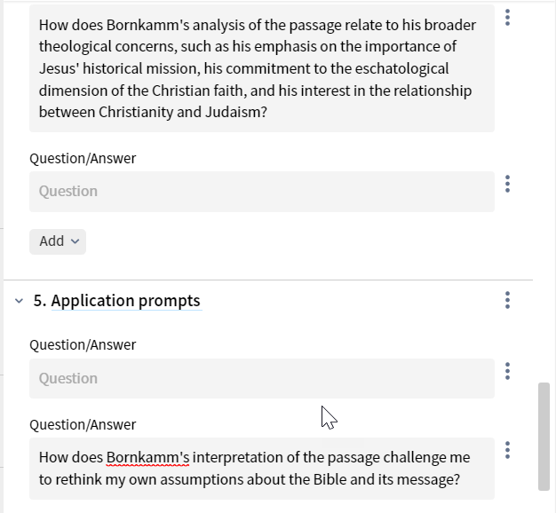 I'm assuming the steps above are similar to the image so I've attempted to recreate it based on the provided image. I've generated 5 major steps and within each one, I've included a 'text' task as well as a question/answer task. Is that similar to you or should I be adding or removing any tasks?