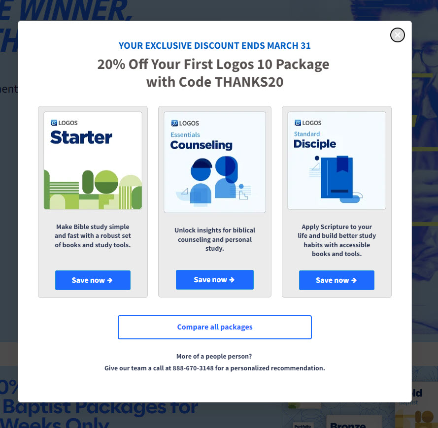 I've had Logos 10 for years and have 30K+ books in my Library. Why is this Exclusive Discount on "Your First Logos 10 Package" being advertised to me? "Logos Starter"? Really???