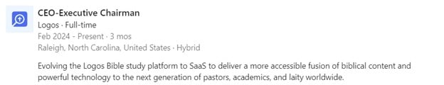 Evolving the Logos Bible study platform to SaaS to deliver a more accessible fusion of biblical content and powerful technology to the next generation of pastors, academics, and laity worldwide.
