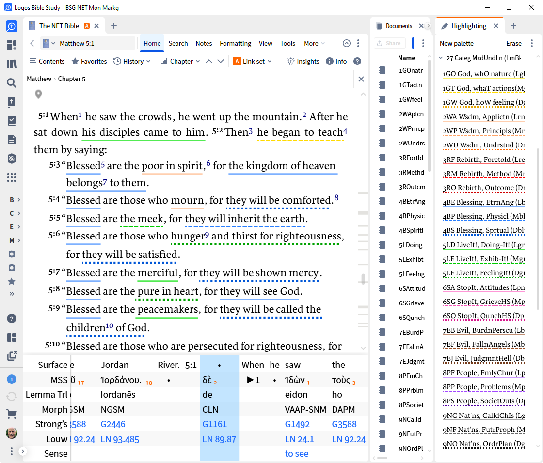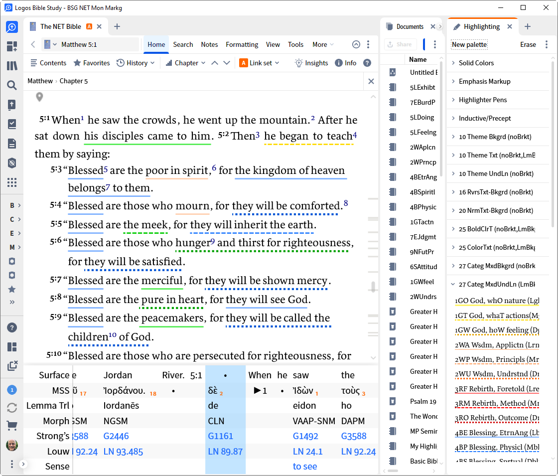 I do a LOT of Bible underlining/highlighting for various reasons (many free templates available for Styles in Faithlife groups "JimDeanStudyStuff").