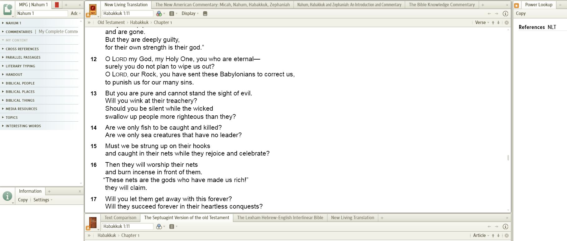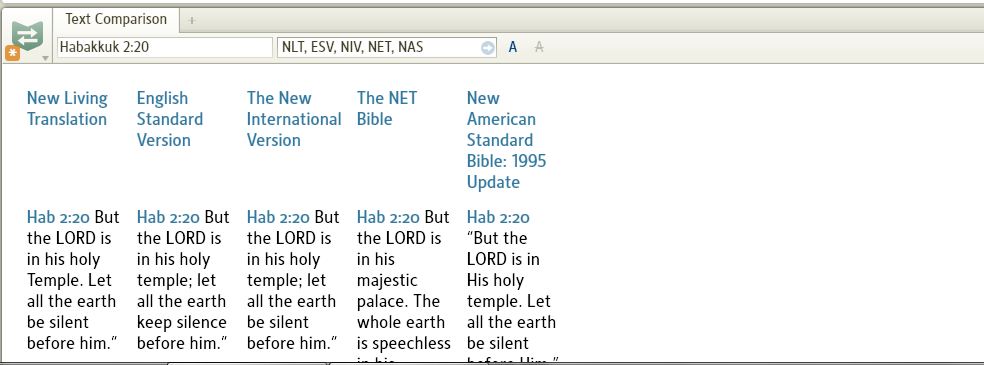 I was reading Habakkuk today and as I was scrolling down to chapter 3, Logos 4 became real slow. Then Text Comparison started to flash on and off - that is, the texts appear and disappear. Then, it alternated between display of abbreviations of the bibles (NTL, ESV, NAS) and the full name of the bibles (New Living Translation, English Standard Version, New American Standard Bible: 1995 Update). The actual bibles were NLT, ESV, NIV, NET, NAS.