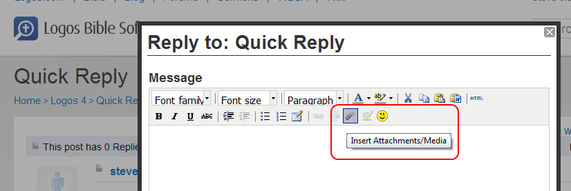 It's technically possible, but the multiple scroll bars make it very confusing, and some people don't find the "Insert" button afterwards. I figured that if you needed instructions to attach the images, you're likely to get confused by the scroll bars, and it was easier to tell people to use the normal reply, than to explain about the scrollbars.
