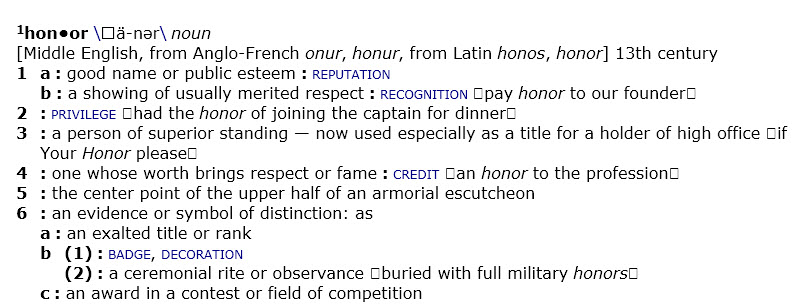 Anyone look up "honor" in Websters 11th and see if this displays correctly on your system?