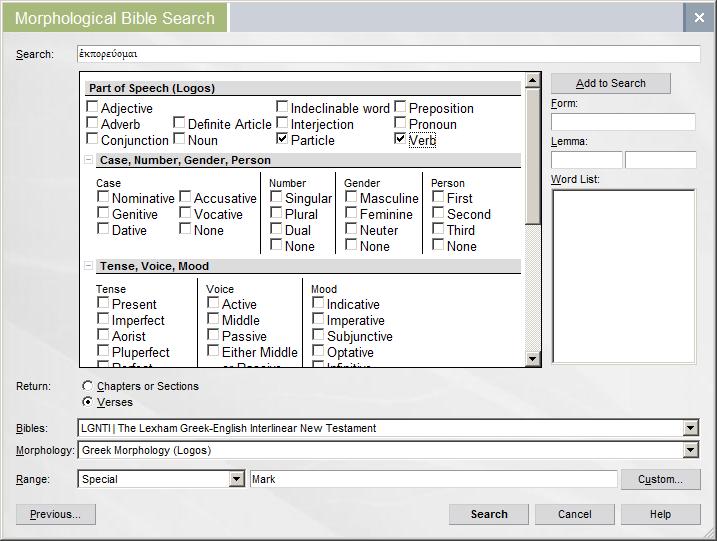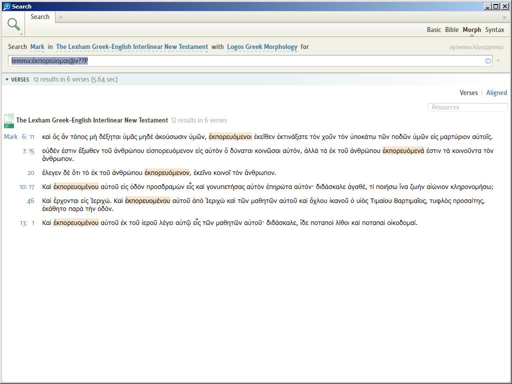 I did a search (for a study that I am doing) in v.4 of ἐκπορεύομαι in Mark's Gospel. I need to know where this occurs in his Gospel as a Verb/Participle. The following is the result: