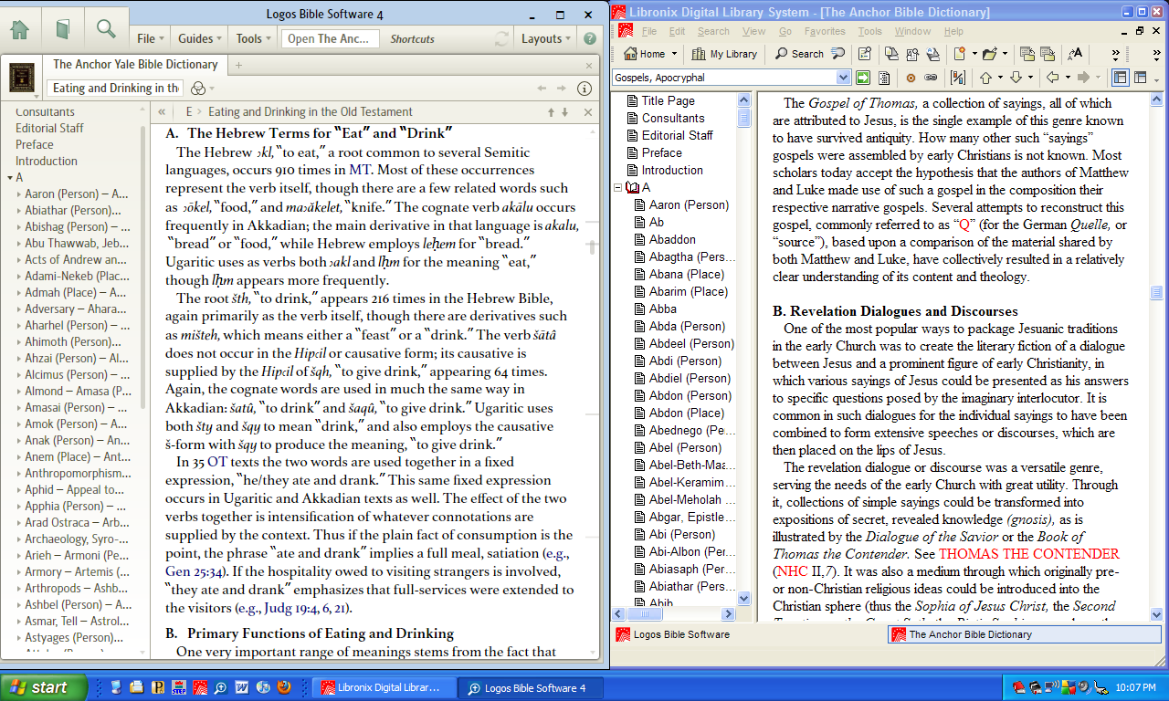 contents pane in Logos 4, when I click on one entry, it opens up a