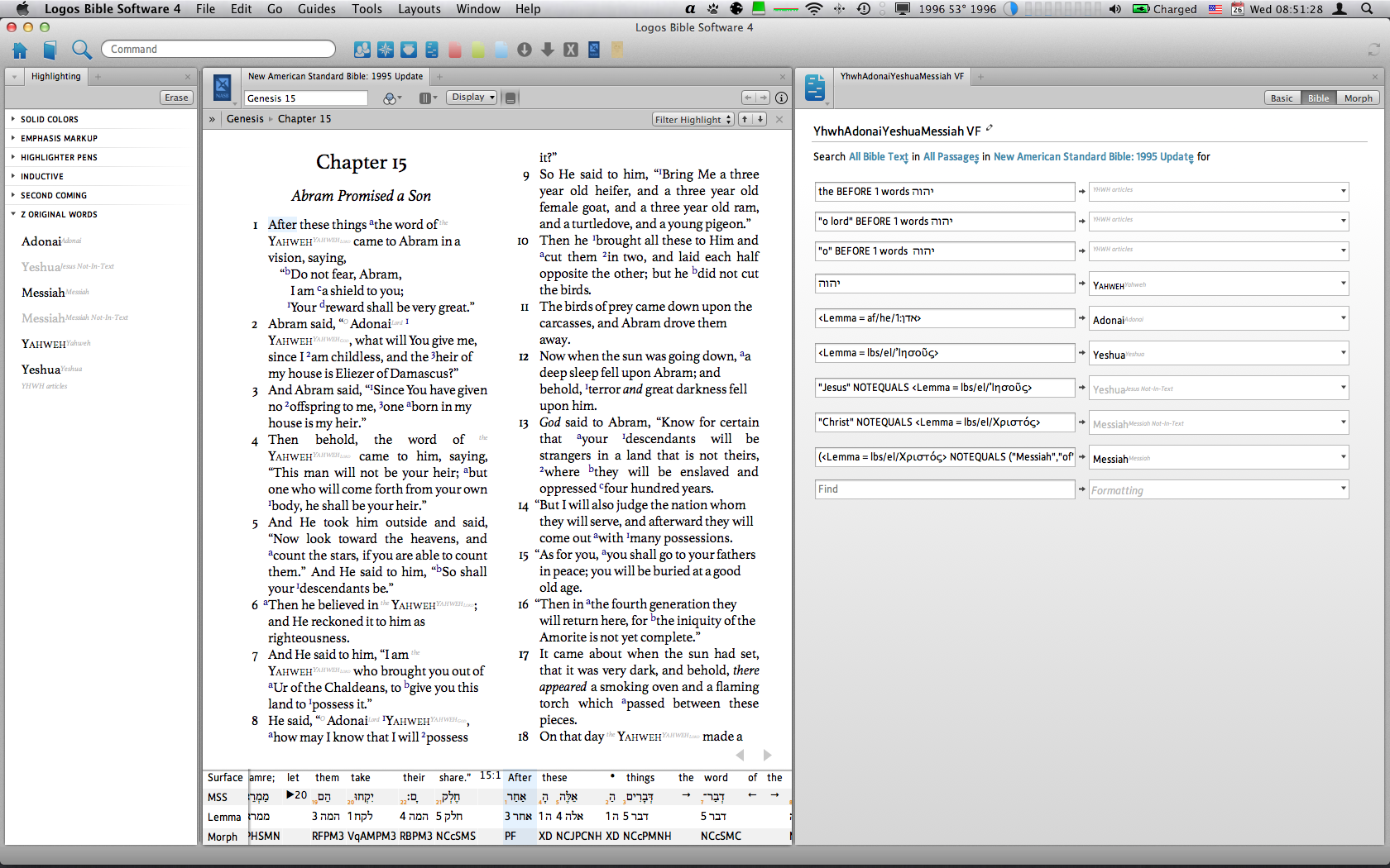 I found this thread on Changing LORD to Yahweh in my NASB95 interesting; so that when I read my NASB95 text I know that the underlining text is Yahweh.