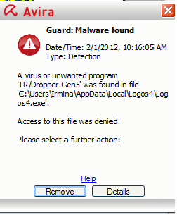 I just installed the newest update. My antivirus flags Logos4.exe as a malware.