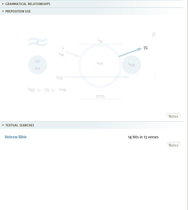 No, I did not manipulate the image - the preposition use is that unreadable and the search results that empty. When I click on "Hebrew Bible" it does launch the search in a separate tab. Is that the intended behavior? As for the preposition list, could it be done with a bit higher contrast - I don't want to muck up my whole machine for a single feature.