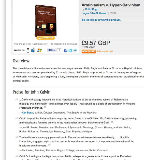 If Logos was biased toward Calvinism, do you **really** think they'd be publishing Roman Catholic resources, much less the works of Arminius?
