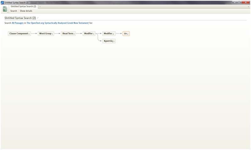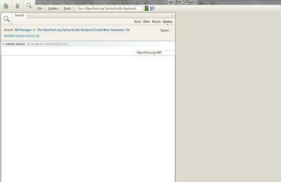 I finally got around to trying to use the syntax search features on Logos 4 -- I was trying to run a very simple search for "in Christ", using Col 1:2 as the "model" for the search. (screenshot below).