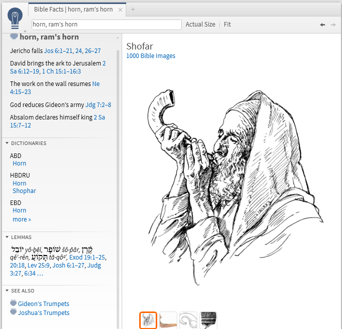 I found that shofar was not a recognized item in Biblical Things - something that truly surprised me. I then loved the fact that ram's horn popped up with an image entitled shofar