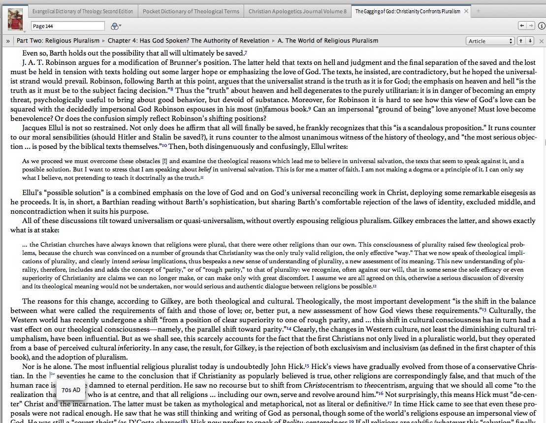 I came across this as I was doing some reading and thoughts I would share so it could be properly addressed. As you can see from the context the resource should be tagged for the 1970's not 70 A.D. I mean, unless John Hick was really that old...