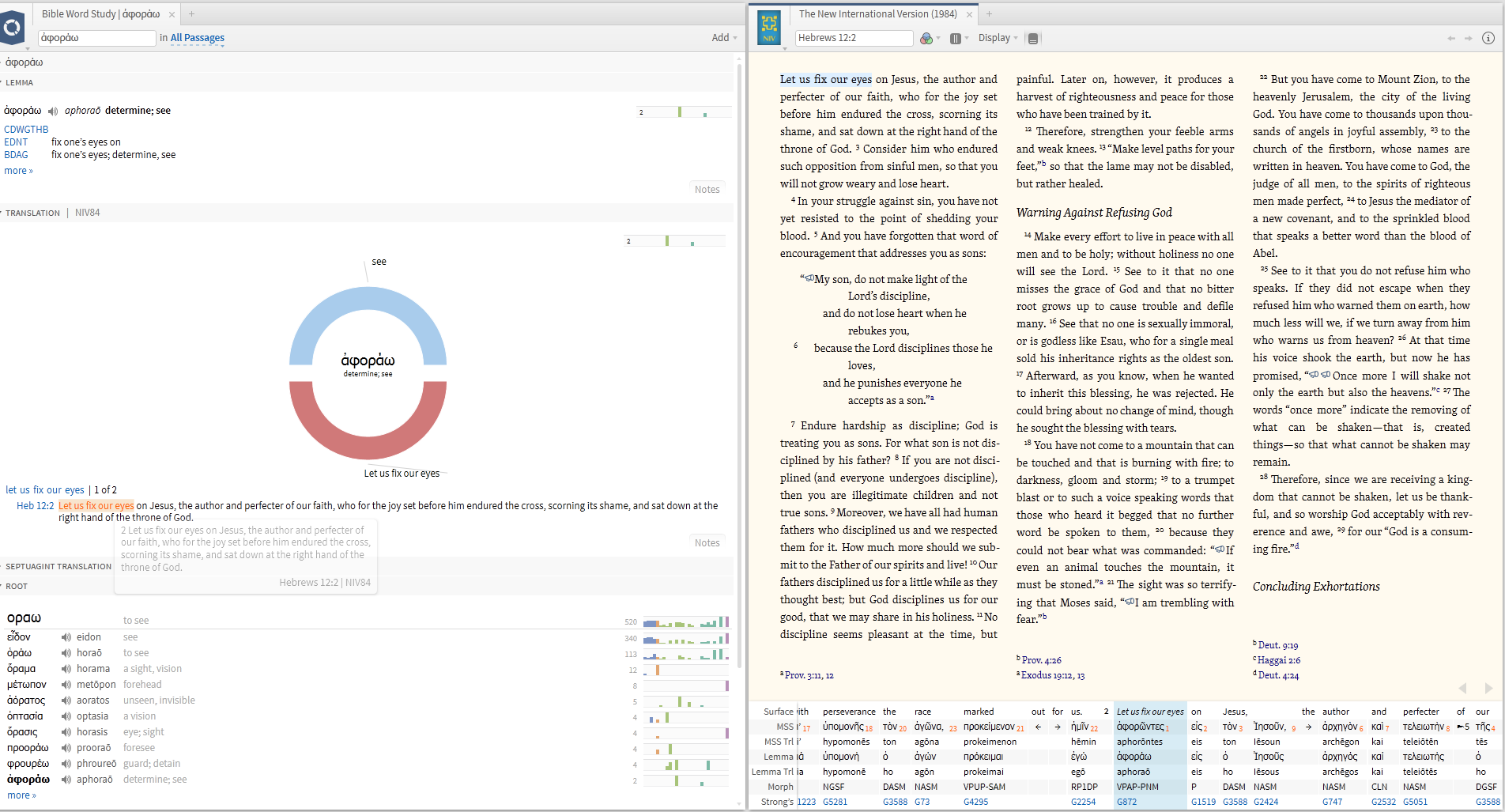 In the screenshot below I have clicked on a reference in the BWS translation section to open the NIV at the appropriate point.