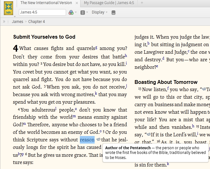 As per the screenshot below, the allusion in verse 5 is taken to be to the Pentateuch