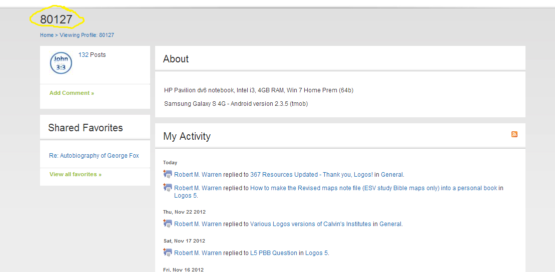 When I clicked on user number it went to user's profile, in this case Robert Warren profile