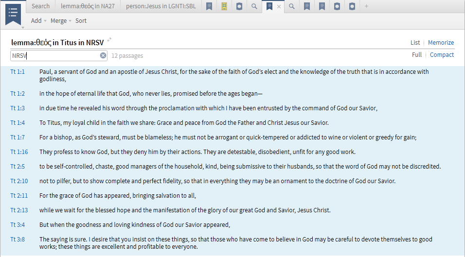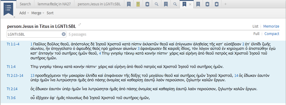 For example, merging (based on intersection) the two PLs below only results in one match - Titus 1:4
