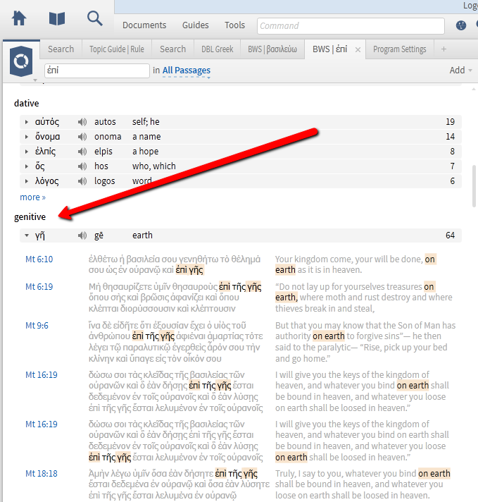 Also is there a way I can export a section in word study like a particular grammatical relationship ?
