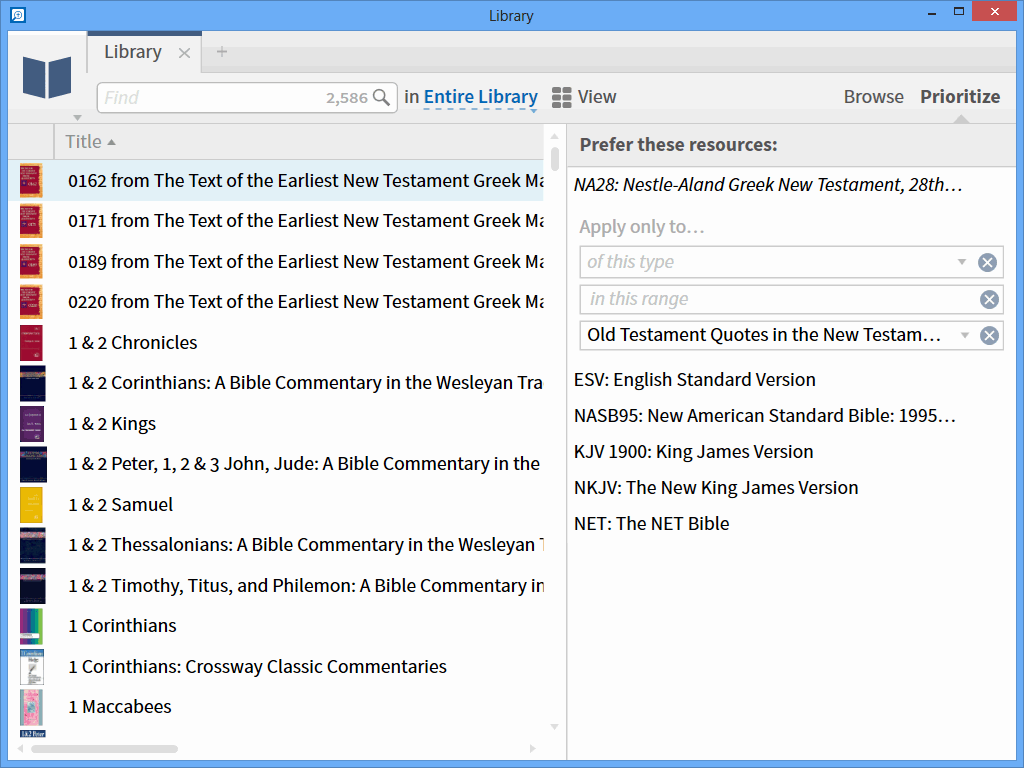 The 'trick' is that if the version you specify doesn't cover a particular passage, that passage will be shown in your default Bible. So if you choose the LXX, all you need to do is change your default Bible to NA27/28, and you'll get the result shown above. Of course, you probably don't want to change your default Bible all the time, so use advanced prioritisation to ensure that your highly prioritised NA27/28 only applies to this one resource. (The prioritisation also needs to be above your ordinary prioritisations.)