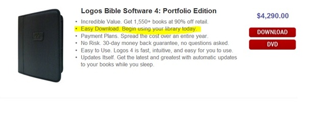 My download and indexing took 50 hours! I realized that my library is very large and that during that first week the Logos servers must have been very busy, but when I use the download calculator at numion.com I discover that download times for the Scholar’s Library at a speed of 2.048 with 0% overhead is 6 hours and 34 minutes. Add in the time of indexing and it would appear no one except those with very fast broadband and CPUs can realistically expect to use their new purchase within a normal workday (8-10 hours).