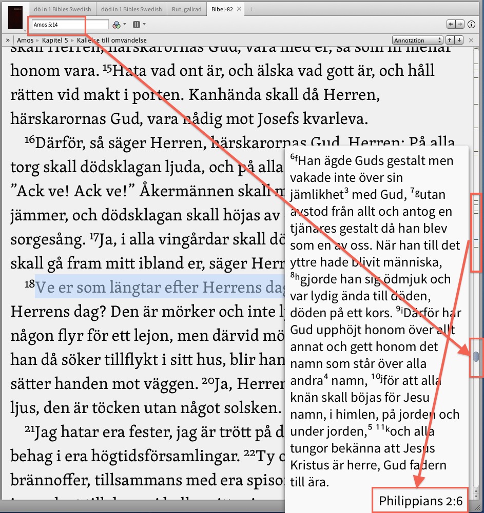 -- Now this is weird, or should I say even more weird: I just opened the NRSV to see if it was a resource issue. I saw the same thing there -- but when I closed the NRSV tab on top of it, Bibel 82 suddenly looked OK. Unfortunately, closing and reopening either Bible brings the incorrect marks back.