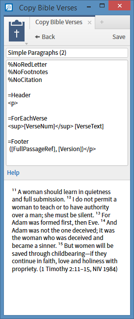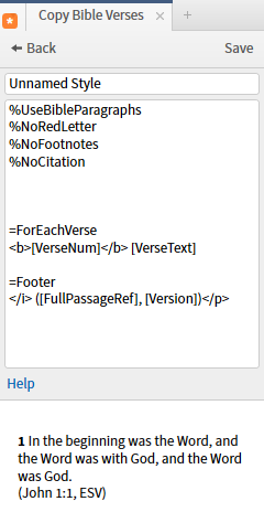 I would like to paste verses with the verse numbers included. The only way I see to do that now is with the "%CopyAllText" which also copies heading which I do not want to paste.